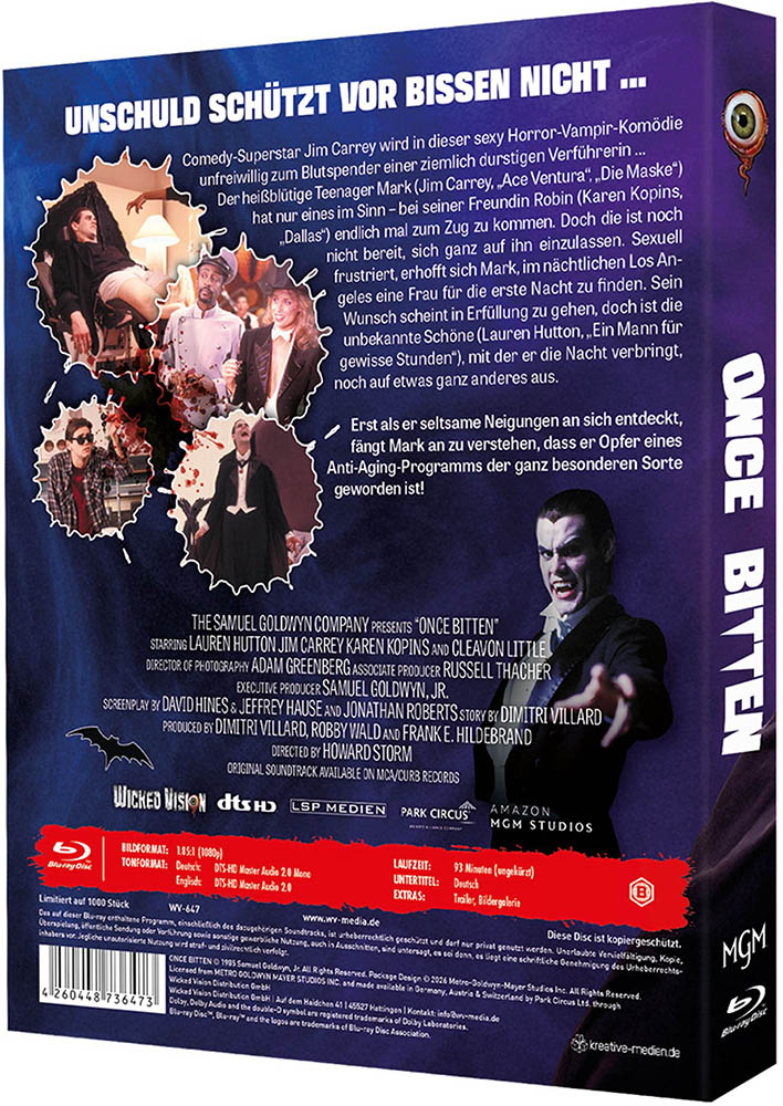 Comedy-Superstar Jim Carrey wird in dieser sexy Horror-Vampir-Komödie unfreiwillig zum Blutspender einer ziemlich durstigen Verführerin … Der heißblütige Teenager Mark (Jim Carrey, „Ace Ventura“, „Die Maske“) hat nur eines im Sinn - bei seiner Freundin Robin (Karen Kopins, „Dallas“) endlich mal zum Zug zu kommen. Doch die ist noch nicht bereit, sich ganz auf ihn einzulassen. Sexuell frustriert, erhofft sich Mark, im nächtlichen Los Angeles eine Frau für die erste Nacht zu finden. Sein Wunsch scheint in Erfüllung zu gehen, doch ist die unbekannte Schöne (Lauren Hutton, „Ein Mann für gewisse Stunden“), mit der er die Nacht verbringt, noch aufetwas ganz anderes aus.Erst als er seltsame Neigungen an sich entdeckt, fängt Mark an zu verstehen, dass er Opfer eines Anti-Aging-Programms der ganz besonderen Sorte geworden ist!