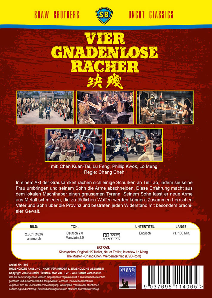 In einem Akt der Grausamkeit rächen sich einige Schurken an Tin Tao, indem sie seine Frau umbringen und seinem Sohn die Arme abschneiden. Diese Erfahrung macht aus dem lokalen Machthaber einen grausamen Tyrann. Seinem Sohn lässt er neue Arme aus Metall schmieden, die zu tödlichen Waffen werden können. Zusammen herrschen Vater und Sohn über die Provinz und bestrafen jeden Widerstand mit besonders brachialer Gewalt.